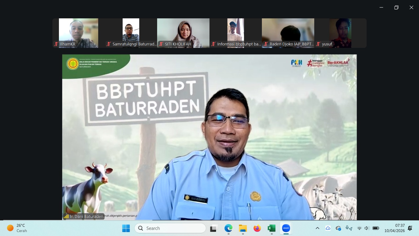 Baturraden — Dalam rangka pelaksanaan tugas kedinasan yang mengacu pada Surat Edaran Kementerian Pertanian, Aparatur Sipil Negara (ASN) BBPTU-HPT Baturraden mengikuti kegiatan pengarahan secara daring melalui Zoom, sebelum memulai aktivitas kerja hari ini Rabu (10/4/2026).